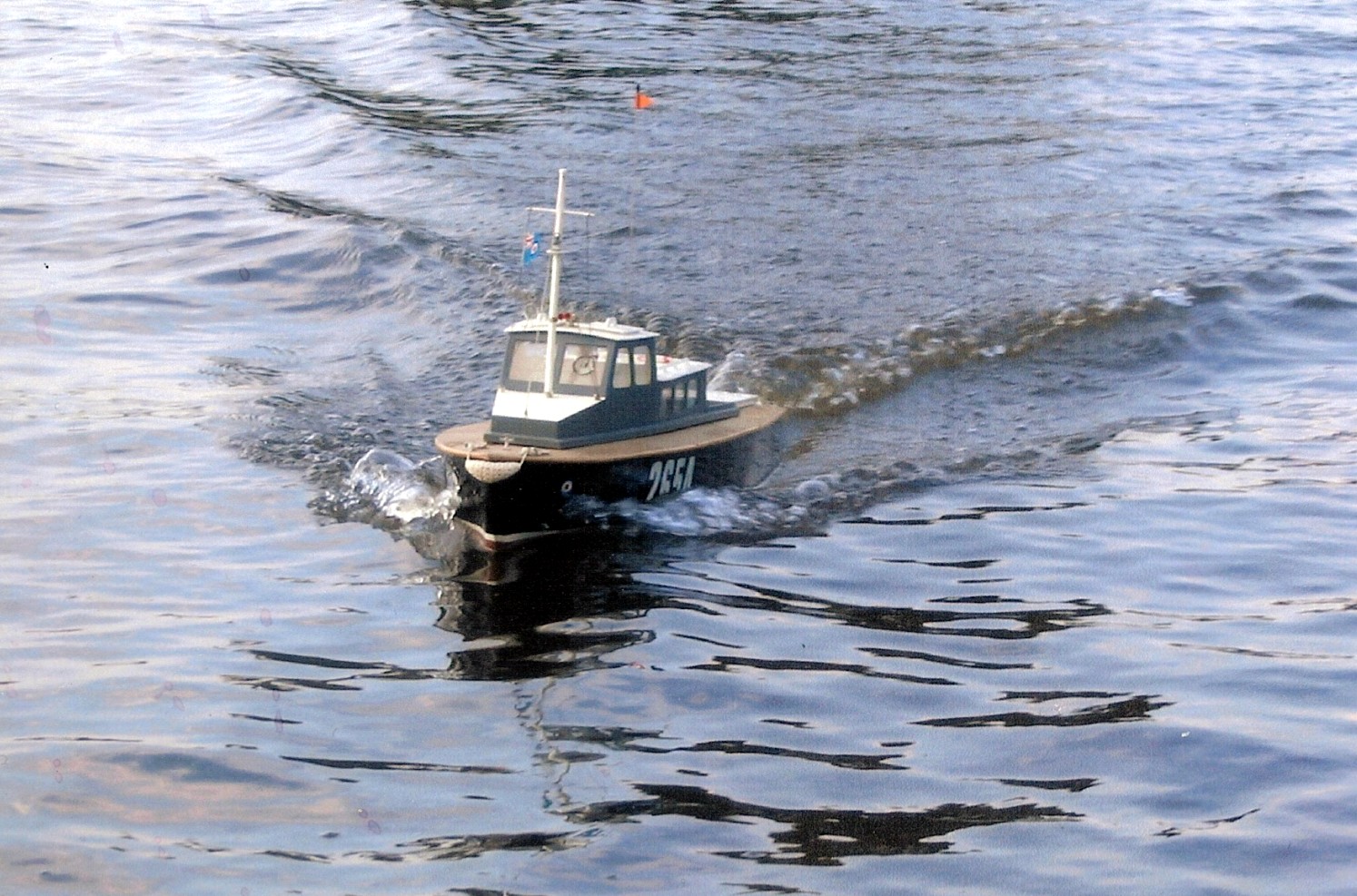 M.S. Northern Star Customs Launch, 54 inches length and 15 inches beam, based on a Bolsons design (Poole boatbuilder now defunct). Introduced in 1956 by the Keelbuild Model Aero Works of Newcastle.