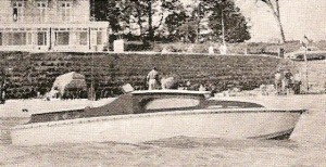 Considered to be the E-type of motorboats in the 1960s, this photo shows one of the many celebrity owners, Billy Butlin racing his open cockpit Huntsman at the Daily Express power boat race in 1961.